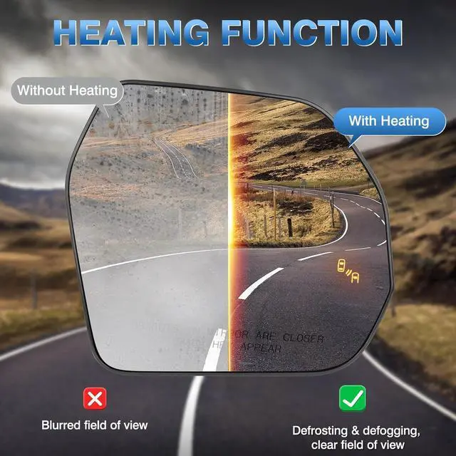 Heating Function: This toyota tundra passenger side mirror glass replacement can quickly remove mirror water mist in rainy and snowy days, ensuring clear visibility.