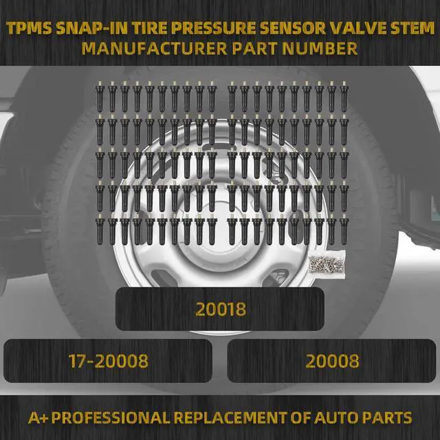 Package Include100 Pcs Tire Pressure Valve Stem with mounting screws Notice Please confirm the part number, fitment details and pictures listed are the same as your needs before purchasing.