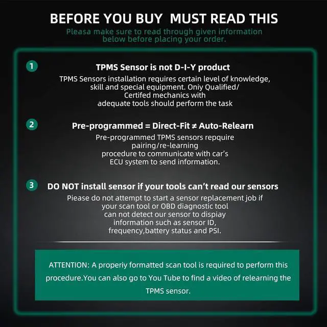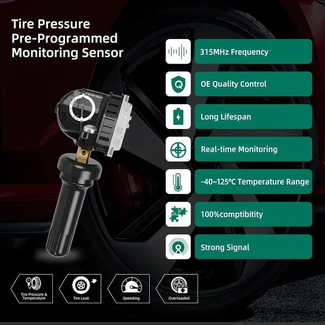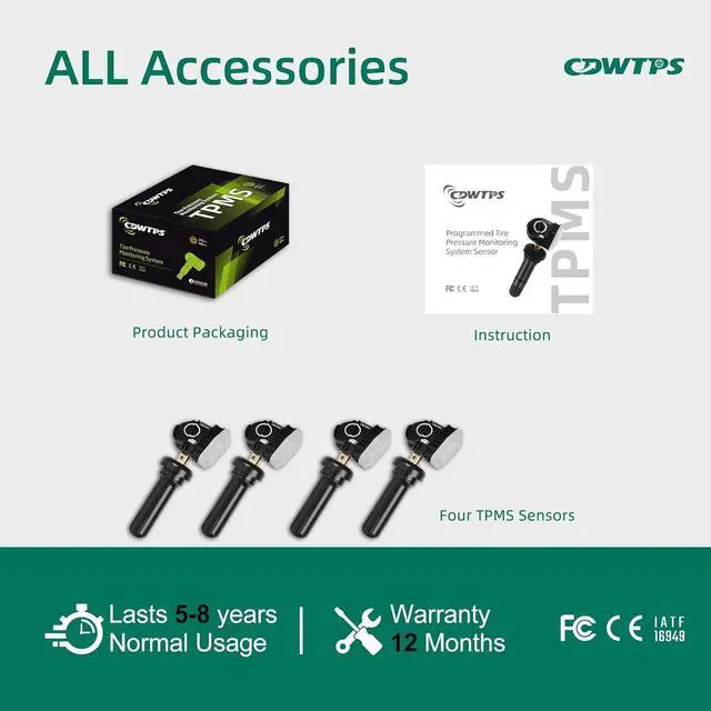 HIGH QUANLITYP AND PROFESSIONAL SERVICEHigh performance Cr2032 battery and 900kpa chip. Battery is made to last up to 5-8 years of normal use, and can withstand 40 degrees low temperature, 125 degrees high temperature. Each TPMS is tested before leaving the factory to ensure trouble-free installation and performance. We provide a one-year warranty on our products, if you encounter problems, please contact us and we will reply within 24 hours.