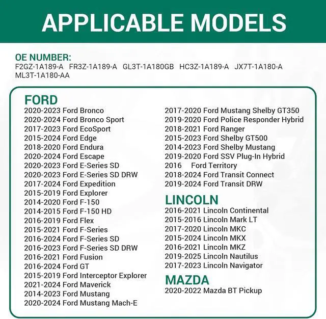 OEM Part NumberPre-programmed tpms sensors direct-Fit OE replacement sensor, Replacing OE numbers are Replace for F2GT1A180AB F2GT1A150AB F2GZ1A189A GL3T1A180GB HC3Z1A189A FR3Z1A189A JX7T1A180A