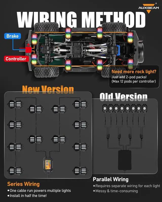 EXPAND YOUR ROCK LIGHT SYSTEM: Simply expand your existing setup with 2-pod packs. To ensure optimal performance, limit each controller to a maximum of 12 pods rock light