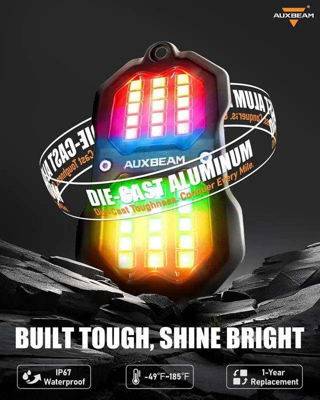 DC12V COMPATIBLE & WARRANTY: Designed exclusively for 12V systems, ensuring easy plug-and-play installation on car, truck, ATV, UTV, marine, Boat, RV, and SUV. No complex wiring required. This rock light kit comes with a 1-year warranty by