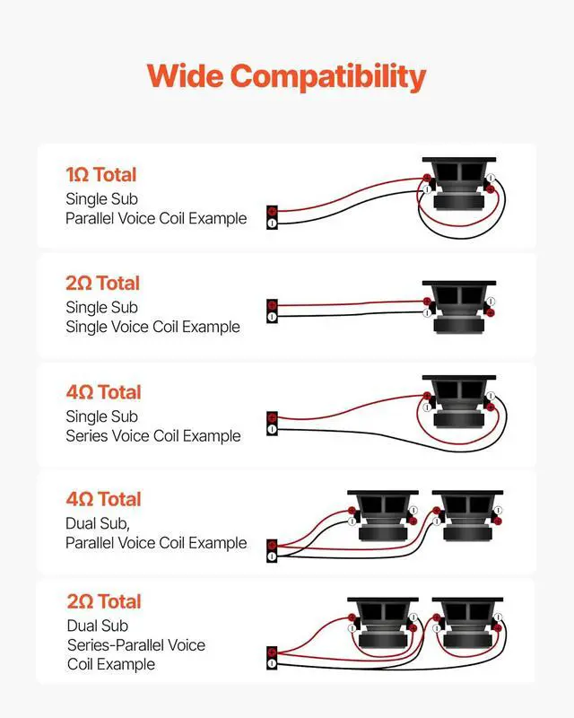 Compact Design: Ideal for compact vehicles and tight spaces, the compact size of this car mono amplifier allows for flexible installation behind the rear seat or in the trunk