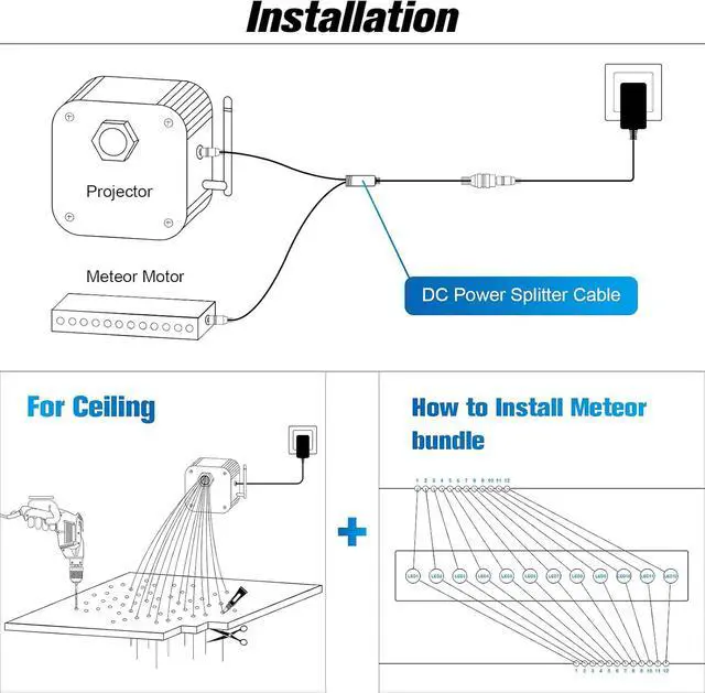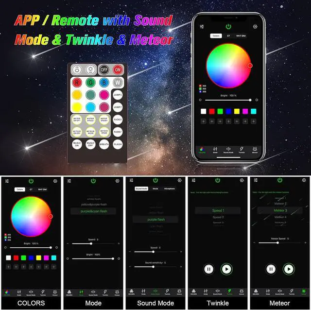 ApplicationLike it's made of starlight with this room lighting, shining and wonderful. Perfect for home theater, cars, house, room, hotel, restaurant, entertainment, KTV, Cinema etc. (Adapter+Cigarette Lighter included)