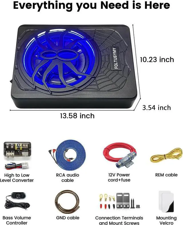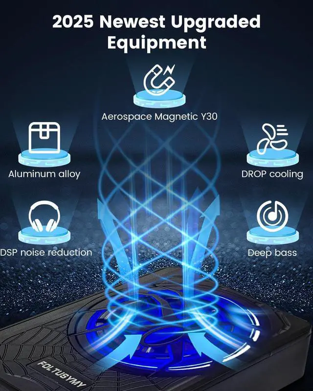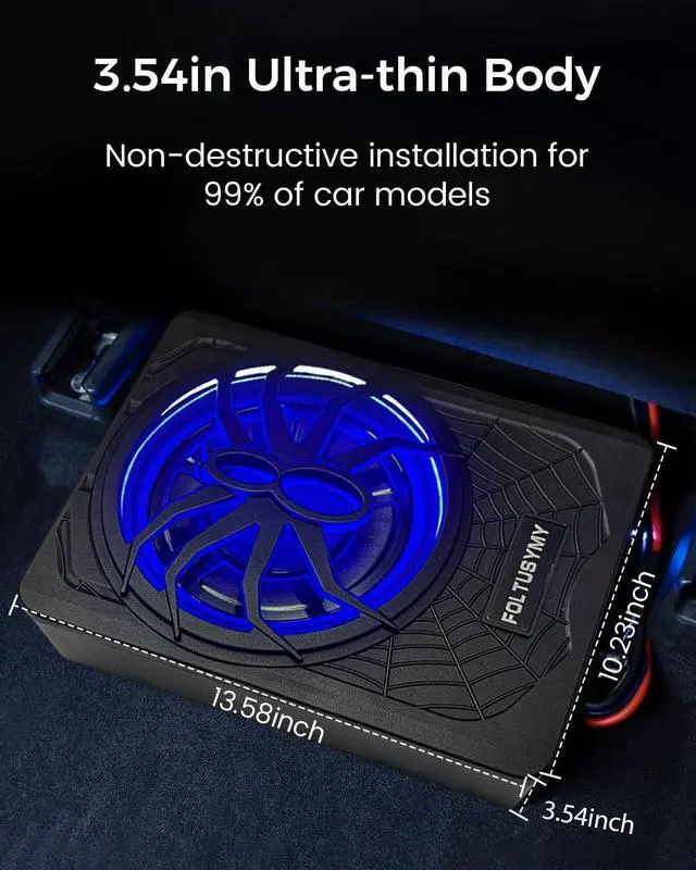 Get rid of the dull designThe new 2025 upgraded version of the car subwoofer audio adopts an aluminum alloy spider-shaped speaker protector and a speaker LED atmosphere light ring design. When the car starts, the subwoofer will light up with a blue LED light. Make your car look cooler at night.