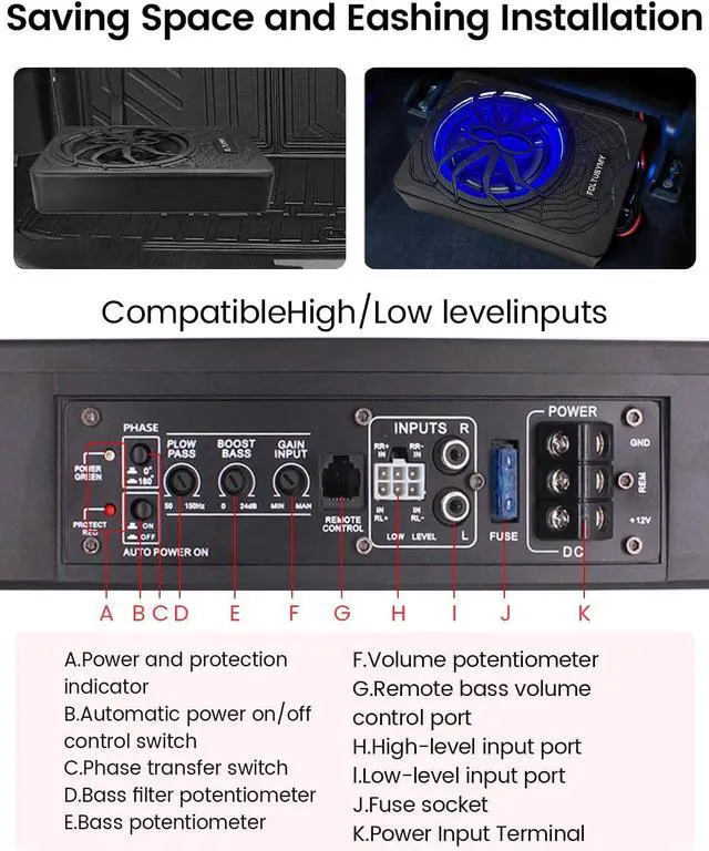 High to Low Level ConverterThis car amplifier Supports High + Low Level Inputs, Compatible with a variety of car stereo audio systems and car head unit equipment. Features automatic turn-on technology, adjustable input sensitivity, soft-delay remote turn-on, thermal protection circuit, short-circuit protection circuit, overload protection circuit, green power/red protection LED.