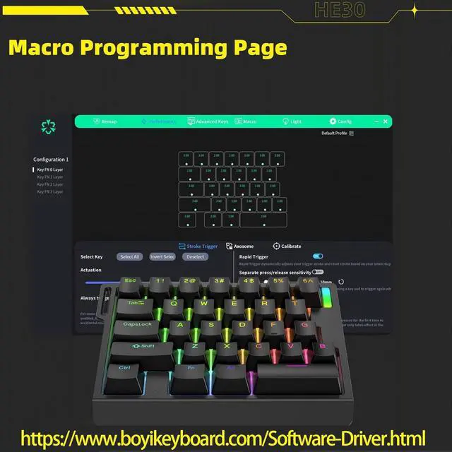 Adjustable Dedicated Magnetic Gaming Keyboard: HE30 Hyper-Fast gaming keyboard equipped with fully 40 levels of per-key actuation, adjustable