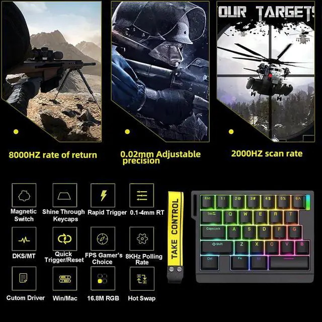 Two Actions for One Keypress Mini Keyboard: The 2-IN-1 action keys helps with accurate movement and stopping to take the headshot, giving peeking and shooting behind walls an advantage. Competitive gamer favourite keyboards that pursue timing, precision, and instant action