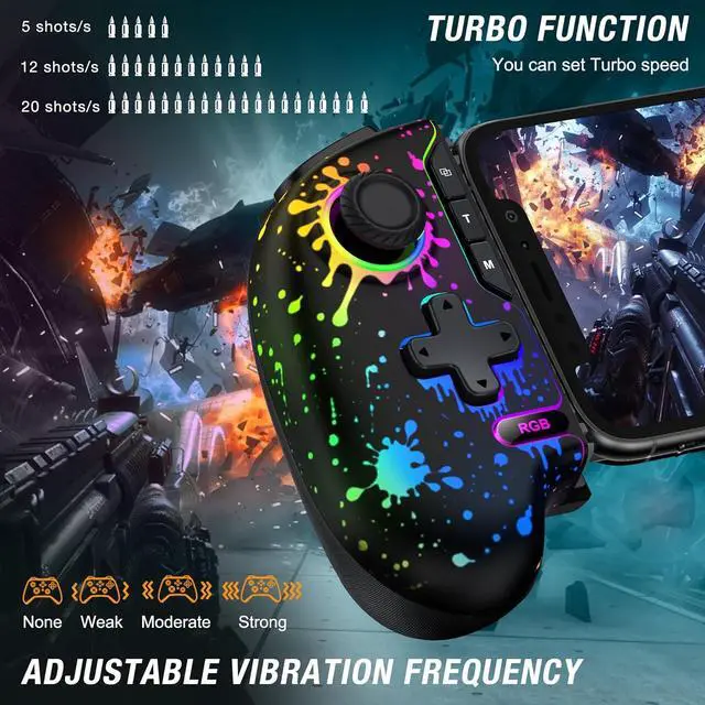 Ergonomic Extended Play DesignEnjoy marathon sessions with this comfortable phone controller for android that fits devices from 4-7 inches (no case removal needed). The 6+ hour battery life and adjustable turbo function make this mobile gaming controller ideal for tournament play and extended streaming