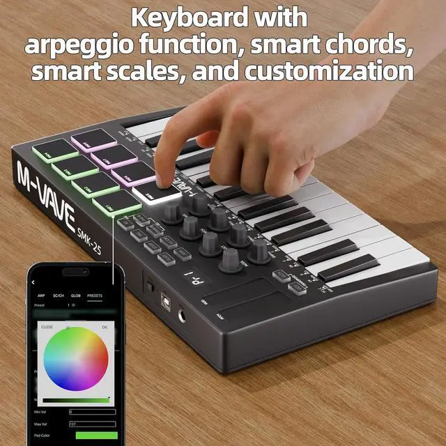 Highly Playable: This bluetooth midi keyboard has arpeggio, smart chord and smart scale function, which allows novices to get started quickly while making it much more playable for professionals.
