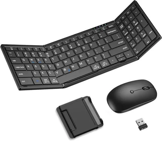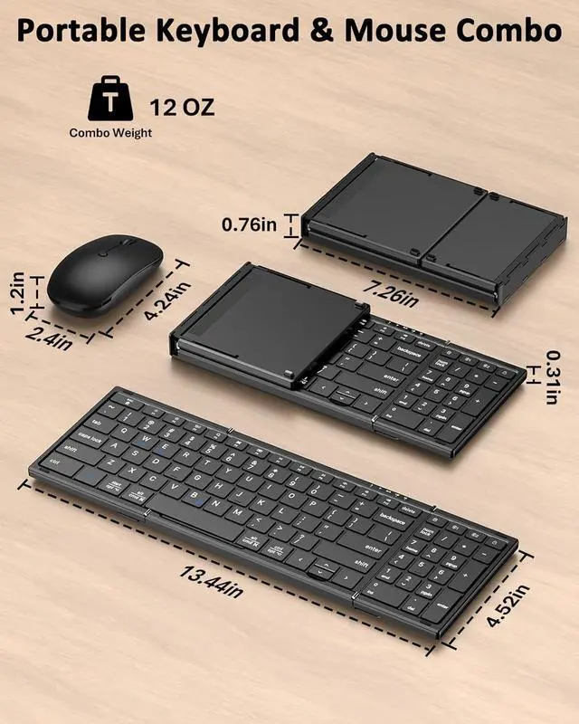 Bluetooth & 2.4G Wireless ConnectivityEffortlessly control up to 3 devices at once, the foldable mouse and keyboard can connect via the included 2.4GH z USB receiver or dual Bluetooth. Swiftly switch between your laptop, tablet, and smartphone with a single button press. Enjoy a stable, lag-free connection within a 33ft range, with broad compatibility across Windows, macOS, iOS, Android, and Chrome OS.