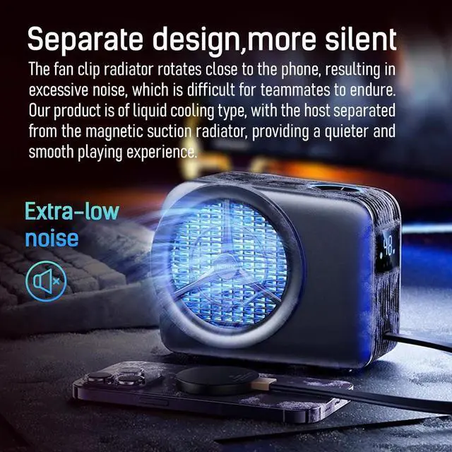 Whisper-Quiet Operation: The host port utilizes a magnetic levitation brushless motor, producing a sound level as low as 21 decibels (virtually "0" noise). Unlike conventional noisy fan-based phone coolers, our liquid-cooled model ensures silent operation that won't disrupt your gaming experience.