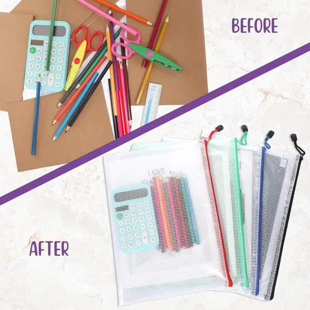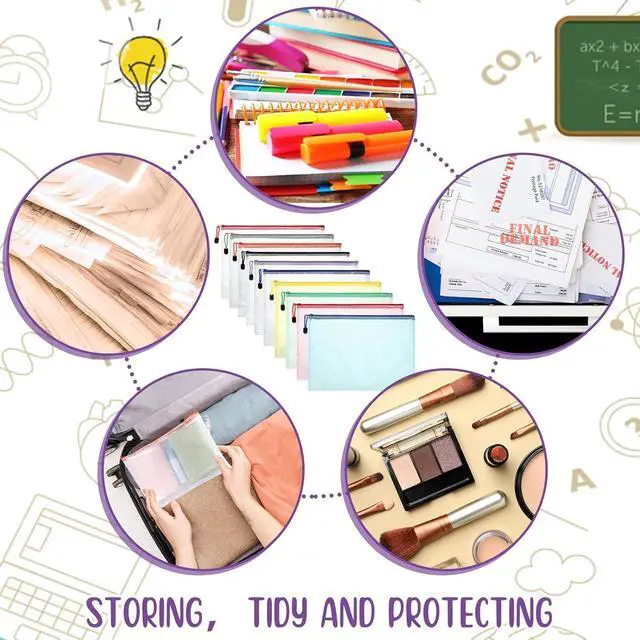 Our waterproof storage bags are practical assistants to help you tidy up your messy paper to make your desk in order, saving space and energy and bringing you visual beauty.