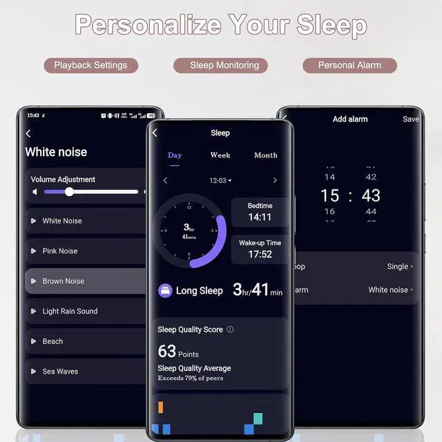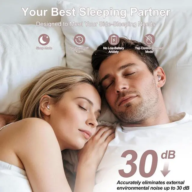 Side Sleepers: Each bluetooth sleep earbuds weighs only about 3 grams, offering a feather-light feel with soft, skin-friendly detachable silicone tips that naturally fit the ears contour. Even when sleeping on your side or turning over, they stay secure without pressure or discomfort. The stable yet non-intrusive design makes the side sleepers earbuds ideal for light sleepers, insomnia sufferers, shift workers, and frequent travellers who need quality rest in different environments, allowing both body and mind to fully relax throughout the night.