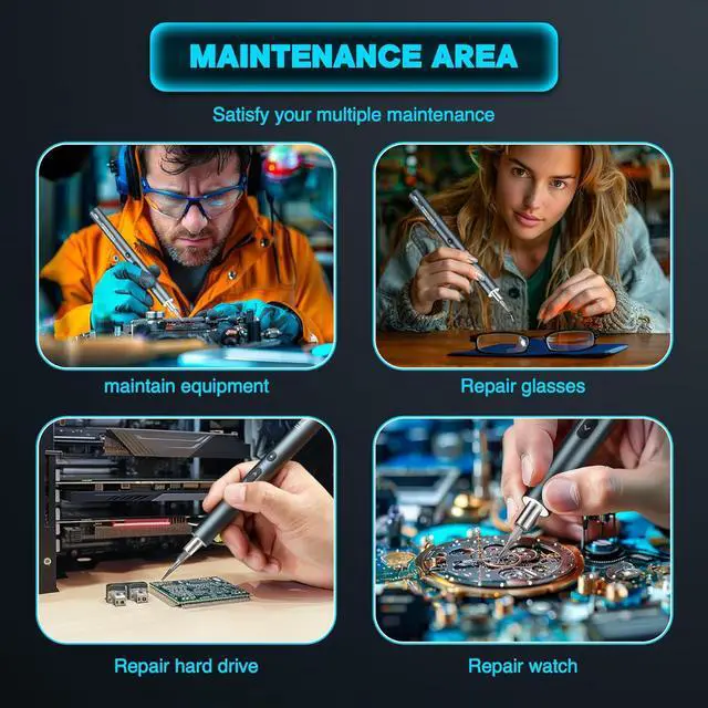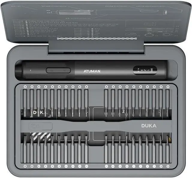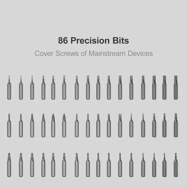 We Bundle Many Accessories1 × Electric Screwdriver; 86 × Precision Bits; 1 × USB Cable; 1 × Magnetic Worktable Pad; 1 × Magnetizer & Demagnetizer Device; 2×Thick Triangle; 2xThin Triangle; 1 × Sucker; 1 × Card picker; 1 × Metal Crowbar; 1 × Crowbar; 1 × 15cm Nylon Long Crowbar; 1 × Stainless Steel Tweezers; 1 × User Manual; 1 × Storage Cases. Not sure if you would use them all but they might be helpful in many cases