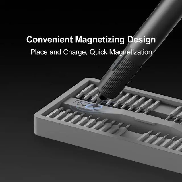 Small & PowerfulThis mini electric precision screwdriver has rotate speed is 230r/min, automatic/manual mode with 0.1 - 0.4 N. m torque, 360° shadow-less lighting design. Wireless design, powered by 350mAh rechargeable lithium battery, 40 mins charging time, and works continuously for 2-3 hours which has totally power enough for your electronic repair work. Remove 30+ iPhone screws in 90 sec. 650mAh battery = 200+ screws/charge (3x faster than manual).