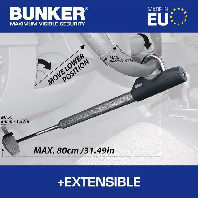 QUICK AND PRACTICAL: You only need to adjust the steering wheel lock the first time you use it: the car lock brakelock adapts to the measure of your car with its steel hook with screw adjustment.