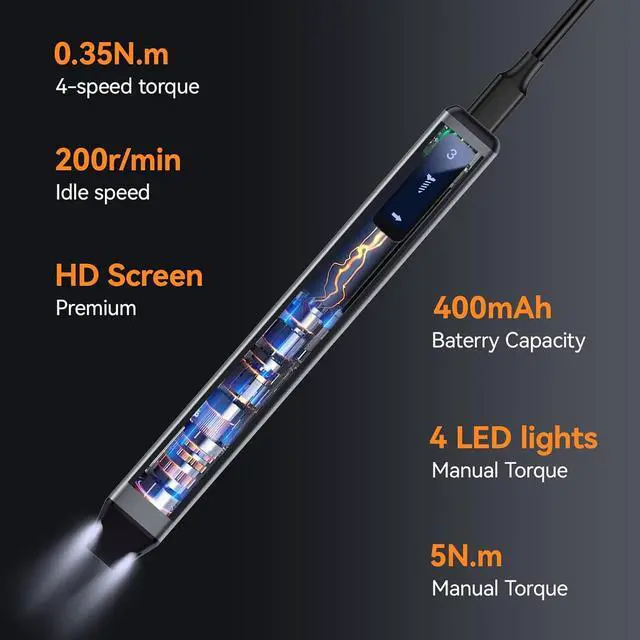 Smart Digital Display An innovative LED digital display screwdriver clearly shows torque levels and screw-in/out status in real time, giving you intuitive control and an advanced interactive experience. This unique feature enhances precision and adds a touch of modern technology to every repair.