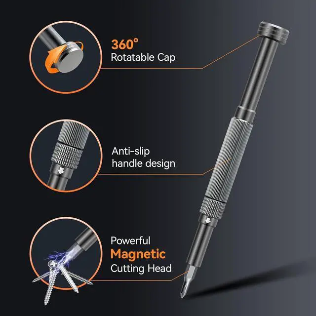 The 83-in-1 Electric Precision Screwdriver Set delivers powerful torque up to 0.6 Nm with a 270 RPM motor, ensuring fast and precise repairs for smartphones, tablets, laptops, and more. Equipped with an 800mAh rechargeable battery and Type-C charging port, this cordless screwdriver offers long-lasting power and quick charging. Its rotating magnetic storage case keeps 72 premium S2 steel bits organized, while included long bits, pry tool, and tweezers handle various electronic devices with ease. The sleek aluminum alloy design combines durability with style. With an LED digital display for real-time torque and screw status, this digital display screwdriver set provides precision, control, and efficiency for every repair task.