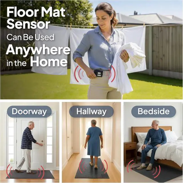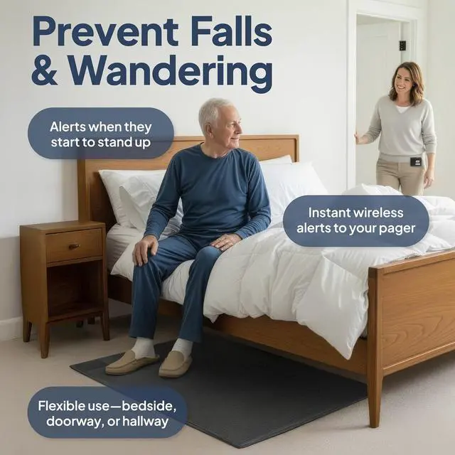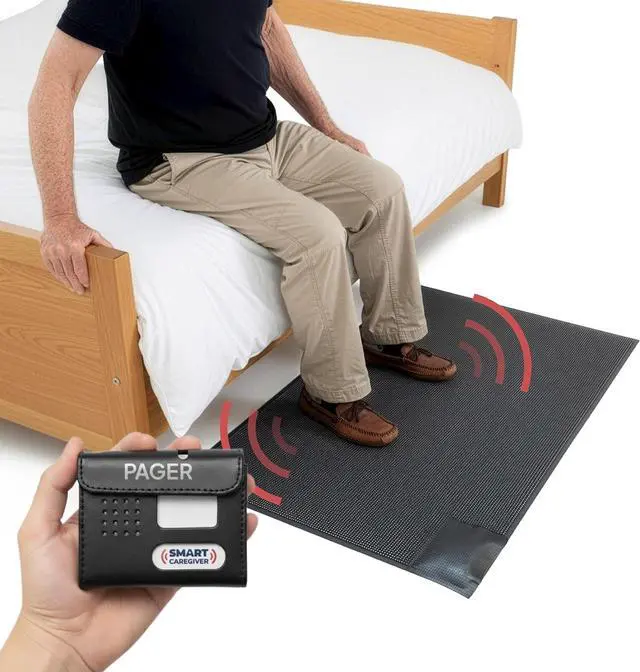 Floor alarm mat can be placed at the bedside to prevent falls and wandering at night, or it can be placed by the door to alert you if the patient is wandering towards an exit. Care givers can monitor multiple devices from the included pager. Pair it with other Smart Caregiver alarms for seniors and elderly patients such as call buttons, motion sensors, and wireless weight sensing bed pads and chair pads (Sold Separately).