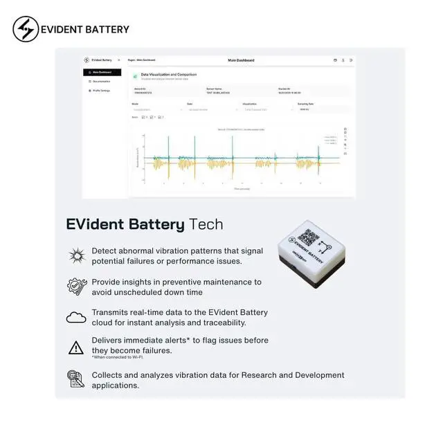 EVident Platform Integration Access live graphs and AI-powered analytics via evbdata. com (Subscription) to detect impact events and vibration patterns instantly.