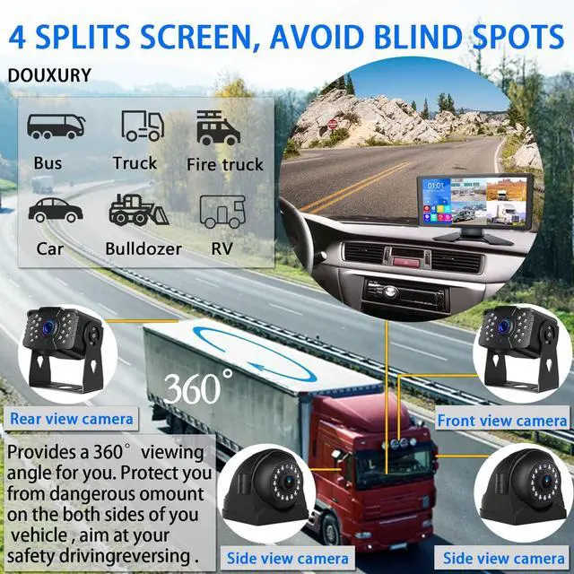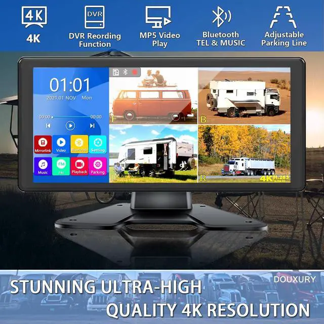Built-in DVR Recording Function & Bluetooth: Supports loop record 4 view cameras at the same time, you can find the video easily in the monitor. Connect the mobile phone Bluetooth, you can play music, answer calls, free your hands, avoid holding the phone, reduce driving risks