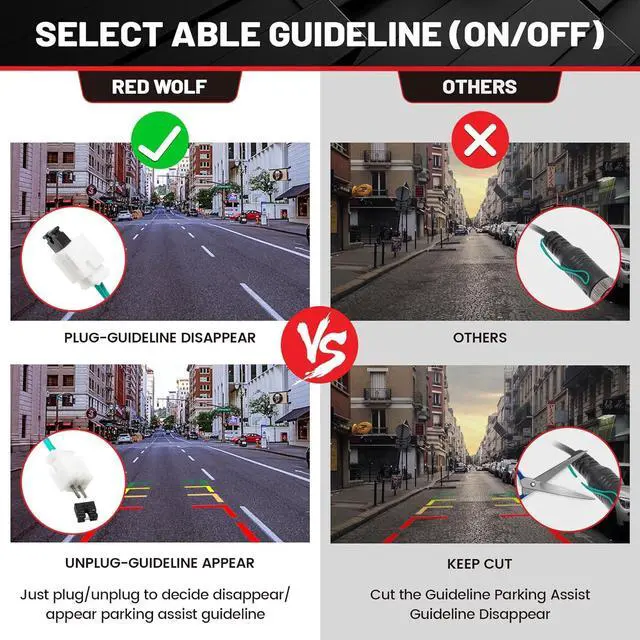 Easy to select guidelineThe GMC reverse camera built in Multifunctional Distance Guide Line On/Off Switcher, you can decide camera mode freely. You don't have to cut any wire harness.