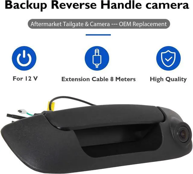 Easy to install: Replace the tailgate handle of the OEM without drilling holes required; Comes with universal RCA connector, allows to plug into most Aftermarket monitor/video receiver