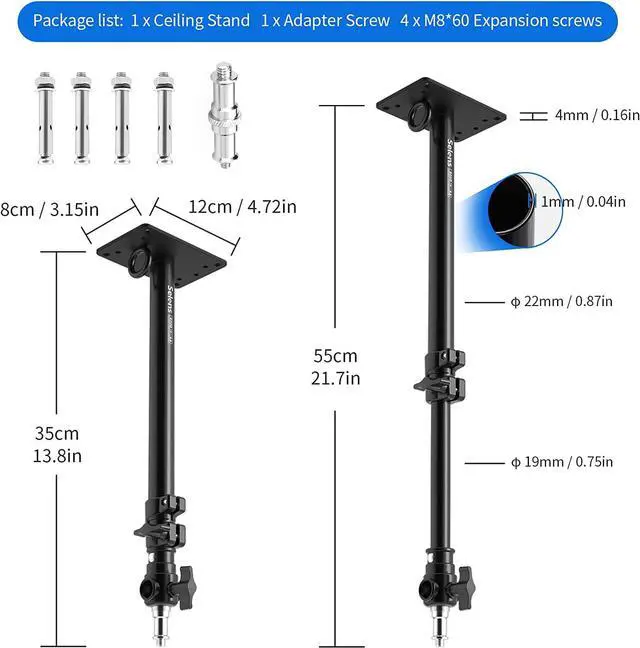 Note: Comes with 4 expansion screws, which is well built and sturdy to ensure the stability, but is not suitable for thin cement ceiling and plaster walls.