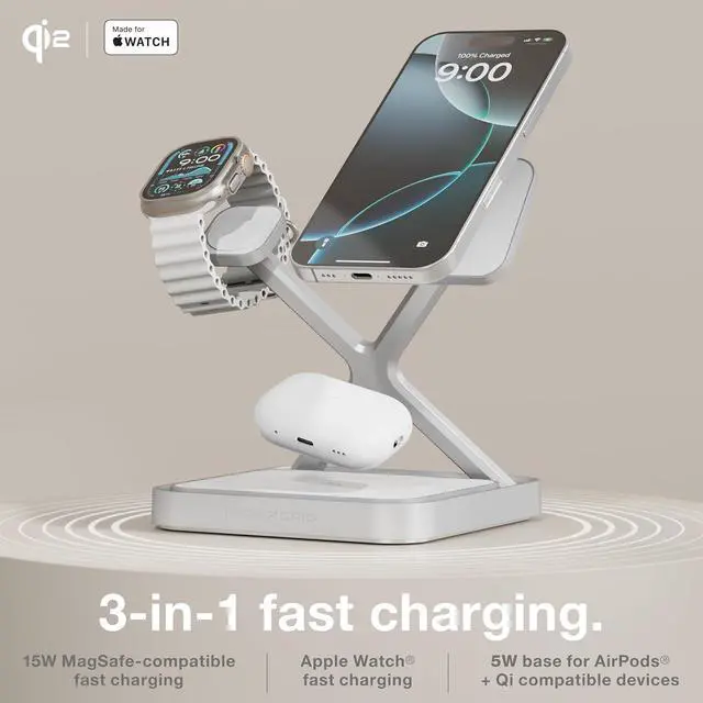 SMART INDICATOR Subtle indicator lets you see at a glance when your AirPods are perfectly positioned - or alert you if any device is misaligned - so you never return to a device left uncharged.