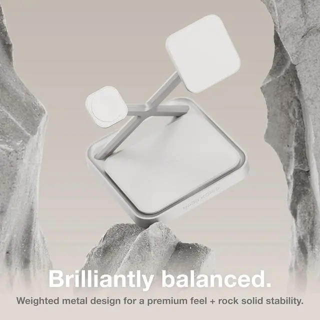 BRILLIANTLY BALANCED Crafted from a precision die-cast metal chassis and weighted for rock-solid stability, it anchors your devices - making every magnetic connection feel smooth, secure, and effortless.