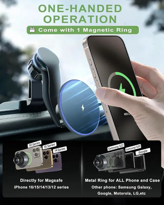 One-Hand Operation The phone holder for Jeep no require complicated button operations, just place the phone close to the magnetic holder. Realizing one-handed safe operation while driving.