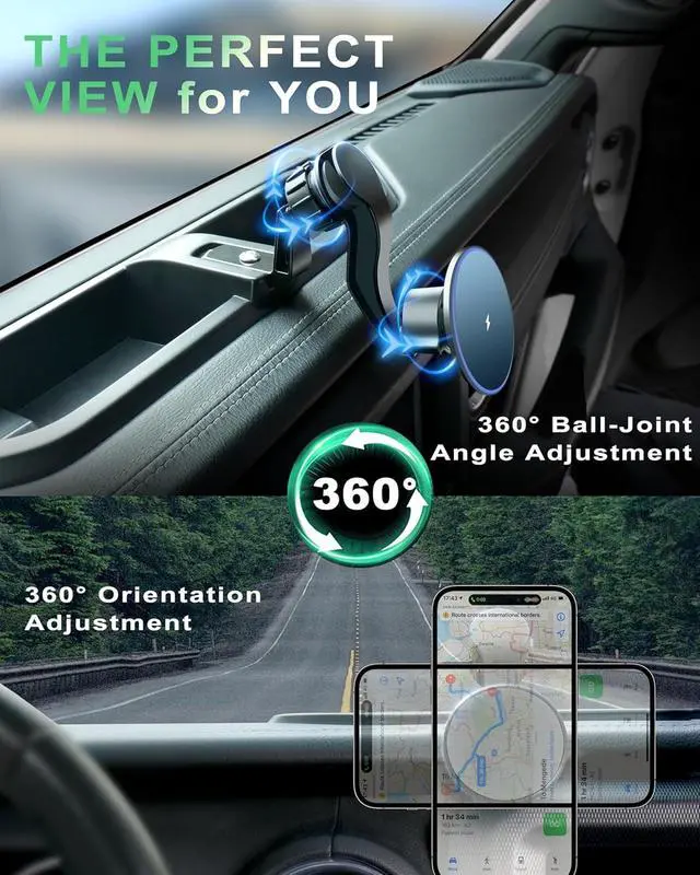 360° Degree Adjustable The magnetic phone mount adopts 360° rotatable ball seat + extension rod design, lets you switch between horizontal and vertical angles at will, easily find the best angle. Ideal for navigation, calls and reading.