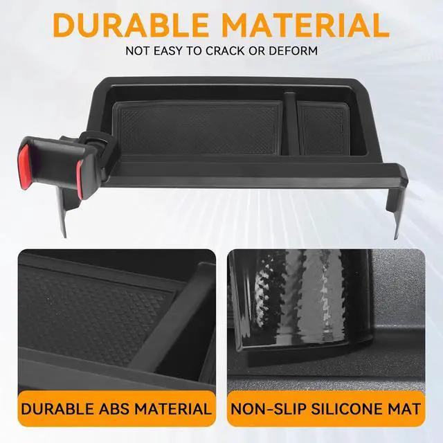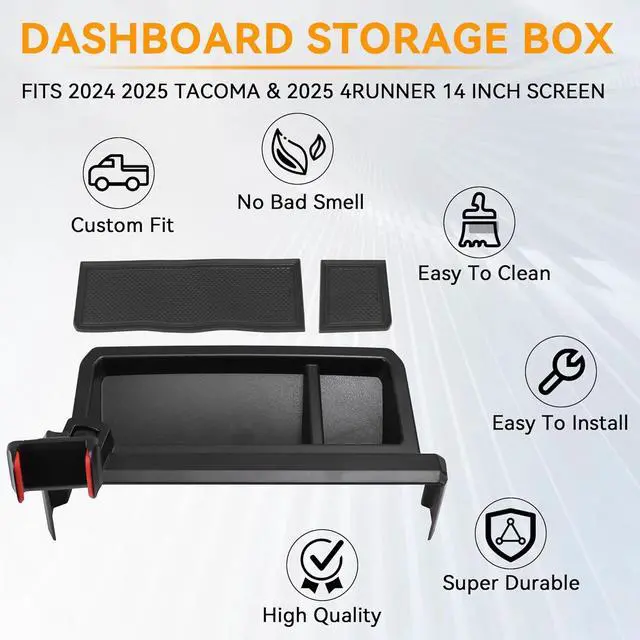 Durable Material: This Car Phone Holder Dashboard storage box fit for Toyota Tacoma 2024 2025 2026 4Runner interior accessories is made of durable ABS plastic, offering scratch-resistant, crack-resistant, and waterproof properties. It withstands high temperatures and can be cleaned with water for long-lasting use