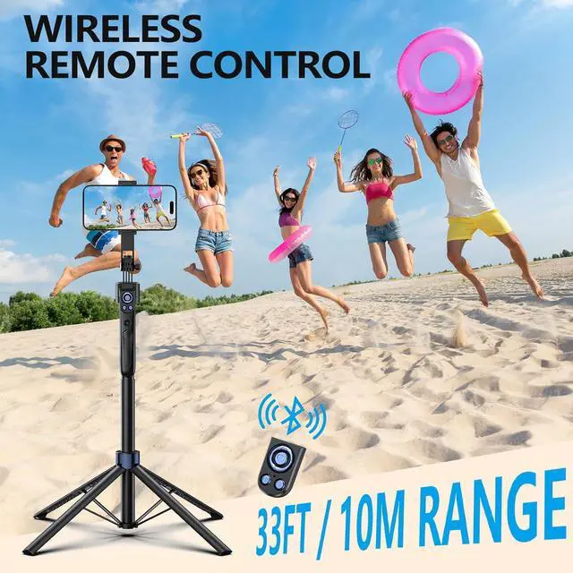 Wireless Bluetooth Remote ControlTake control of your shots from a distance. The selfie stick tripod with 1 Bluetooth remote allows you to start/stop recording or capture photos without touching your device, which is ideal for group shots and long-exposure photography
