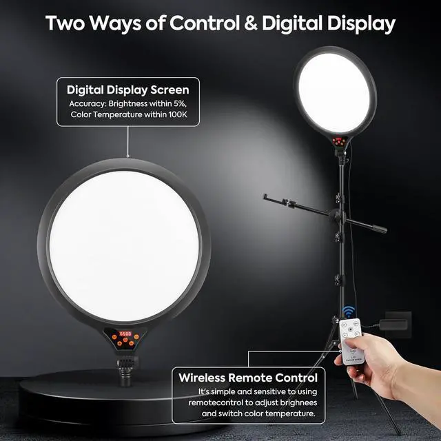 Remote Control & Broad CompatibilityRing light comes with remote control(Note: Remote control battery not included), allowing you to conveniently adjust brightness, color temperature, and power settings from a distance. Paired with the versatile phone mount, which securely holds most smartphones.