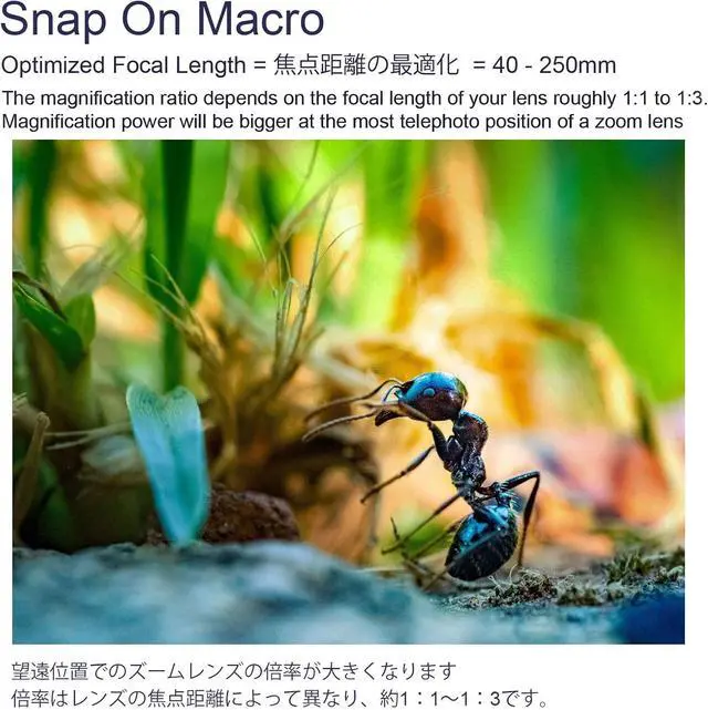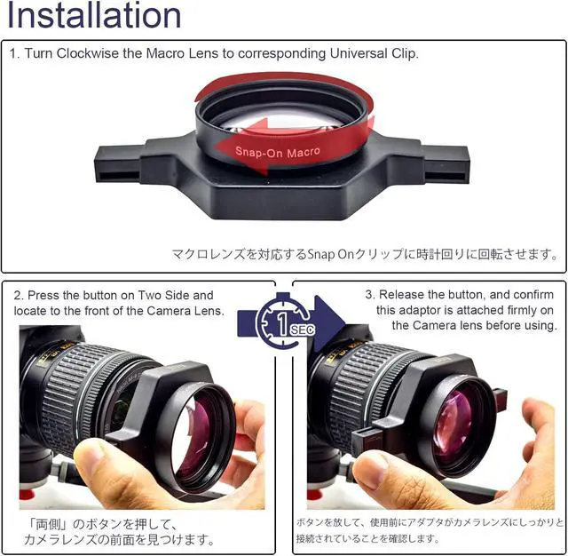 Easy Installation & Portable Press the buttons on both ends of the adapter and lightly press them onto the front end of the lens to install. The lens is portable with the included storage pouch for macro photography on the go.