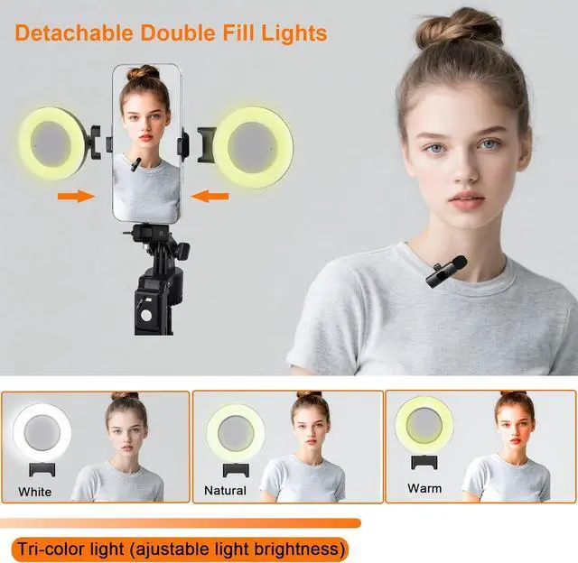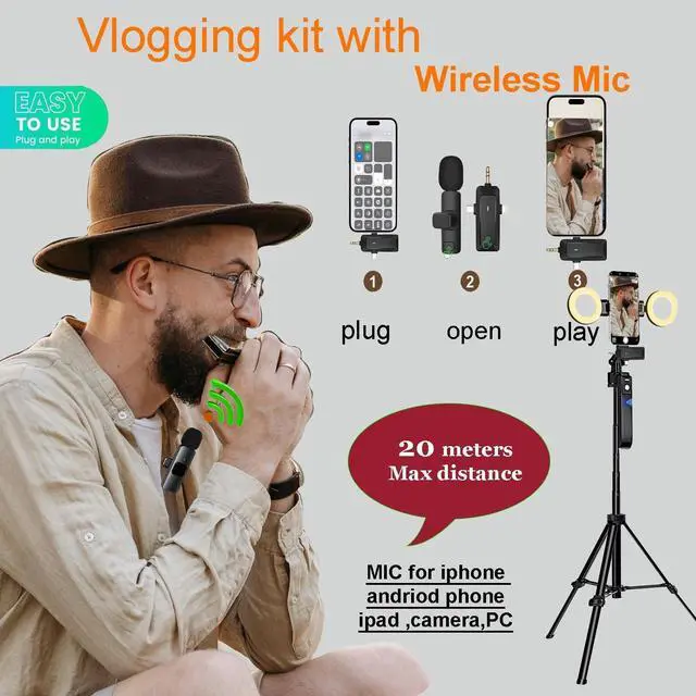 Crystal-Clear Audio: Included in this vlogging kit for iPhone and Anriod phone, the wireless mic eliminates background noise with a 20m (65ft) rangeperfect for dynamic live streams. Just plug and play; zero app downloads. Elevate your audio quality effortlessly, a true content creator essential.