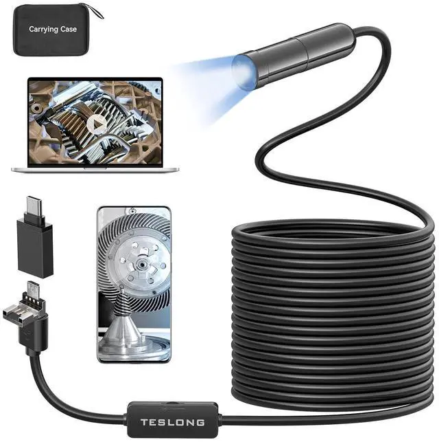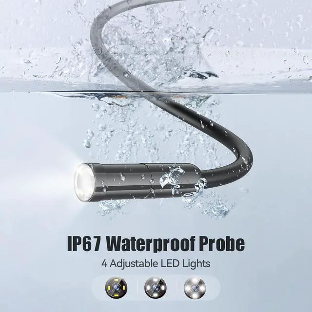 16.5 ft Semi-Rigid Cable With Adjustable Lights - Can be folded to different shapes and reach deep inside the inspection areas. Effective for automotive, HVAC, plumbing, house check, electrical maintenance, industrial, sewer, chimney inspection, etc. Solve Your Work & Life Problems!