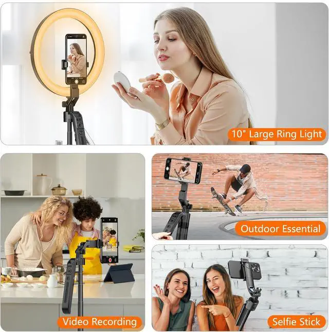 Standard 1/4-inch Threaded Interface The automatic large ring light with stand provides a standard 1/4-inch threaded interface on the top, allowing you to easily attach a ring light, action camera, or phone holder to meet a wide range of shooting needs