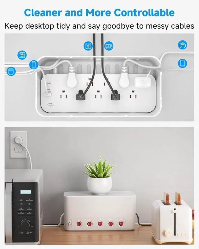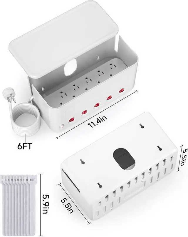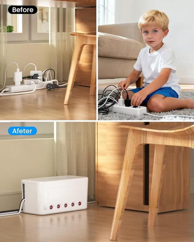 Power Strip Individual Switches: The power strip's outlets and USB ports each have independent switche, eliminating the need to frequently plug and unplug devices, unused outlet can be turned off at any time, reducing unnecessary power waste. The under desk cable box organizer features snap-on design that securely hides floor cables and usb c power strip, reduce curious children and pets from accessing the power cords and outlets while also keeping foreign objects out. It's convenient and safe.