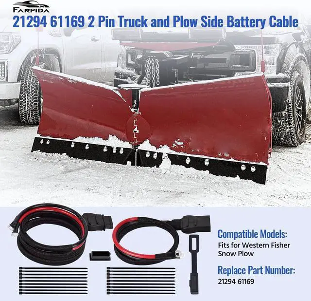 Products include21294 61169 truck plow side battery cable wiring harness set include 1×Plow side replace 21294 (33" Length), 1×Truck side replace 61169, 8274 (66" Length)12×tie wraps, 2×dust covers.