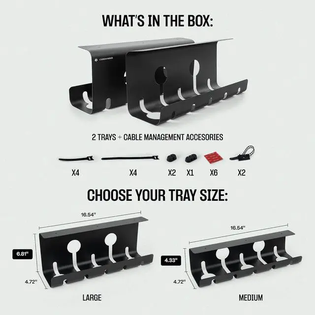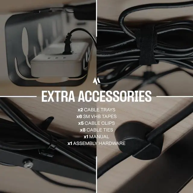 COMPLETE CABLE MANAGEMENT SOLUTION - Equipped with a variety of accessories, our under table cable management tray ensures efficient organization of your cables, keeping your workspace tidy and functional.