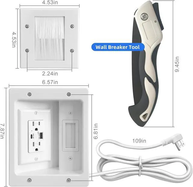 Complete Kit with Accessories: Includes a large wall plate ( 7.87" x 6.57" ), a small wall plate ( 4.53" x 4.53" ), built-in 109in power cord, cutting tools, and user manualeverything you need for a professional finish.