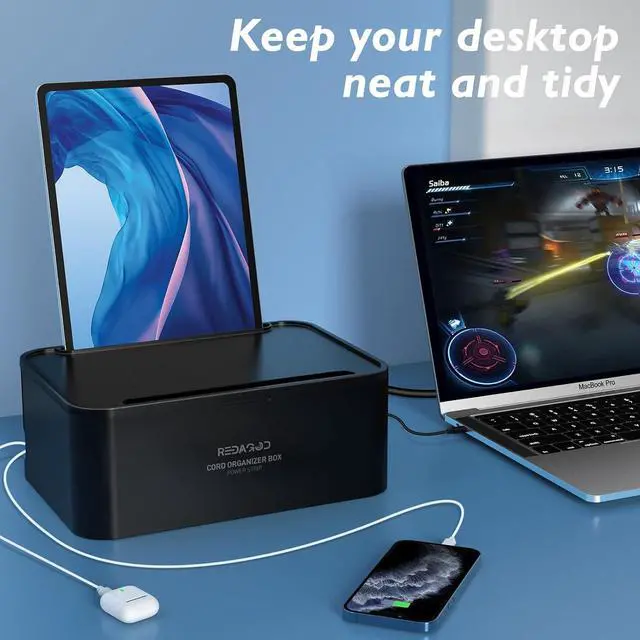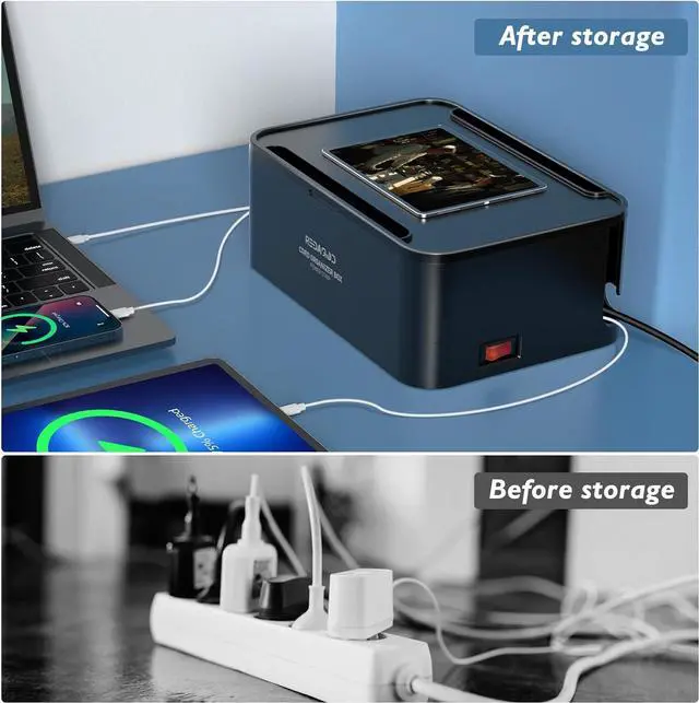 -: 2 cable routing outlets at the rear to hide the power cord inside the box for easy access to the power outlet and cables inside the box, and easy routing and plugging and unplugging of cables. Manage cluttered cables for faster cooling