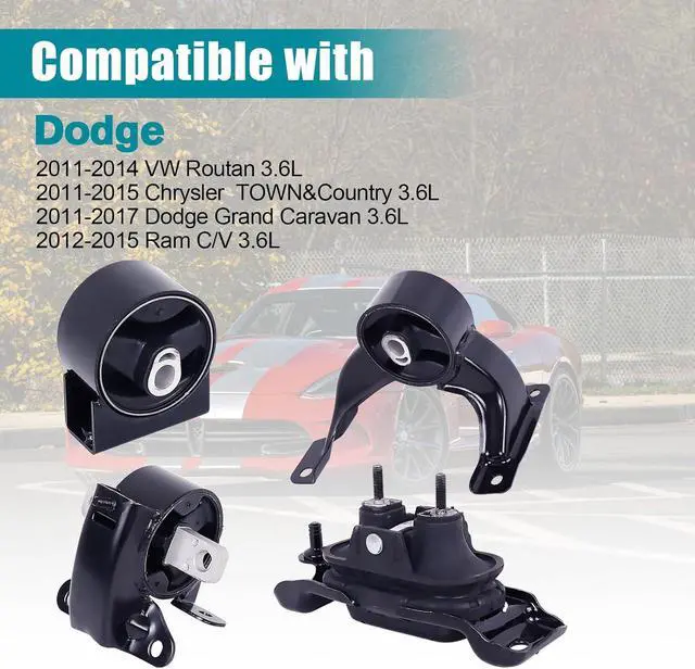 Motor mount compatible with fits 2011-2015 Chrysler Town & Country 6L,2012-15 Ram C/V 6L,2011-2017 Dodge Grand Caravan 6L,2011-2014 VW Routan6L.(Only Automatic Transmission)