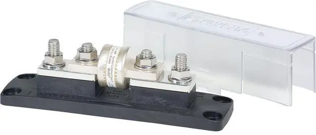 Class T Fuse Block w/ Insulating Cover - 225 to 400A The fuse system recommended by most inverter manufacturers for high speed response to short circuits Clear insulating cover, satisfies ABYC/USCG requirements For use on systems up to 160 Volts DC Large 3/8"-16 stud terminals accept ring terminals for wire up to 4/0 AWG Large heat dissipating tin-plated copper mounting blocks Two # 8 accessory terminals located on each endSpecifications