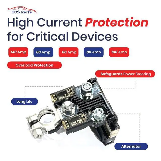 • Multi-Line 6-Pole Circuit Protection: Features a 6-pole fuselink design safeguarding critical circuits with ratings of 140A, 80A, 60A, 80A, 80A, and 100A, providing dependable protection for the alternator, starter, and main electrical systems.