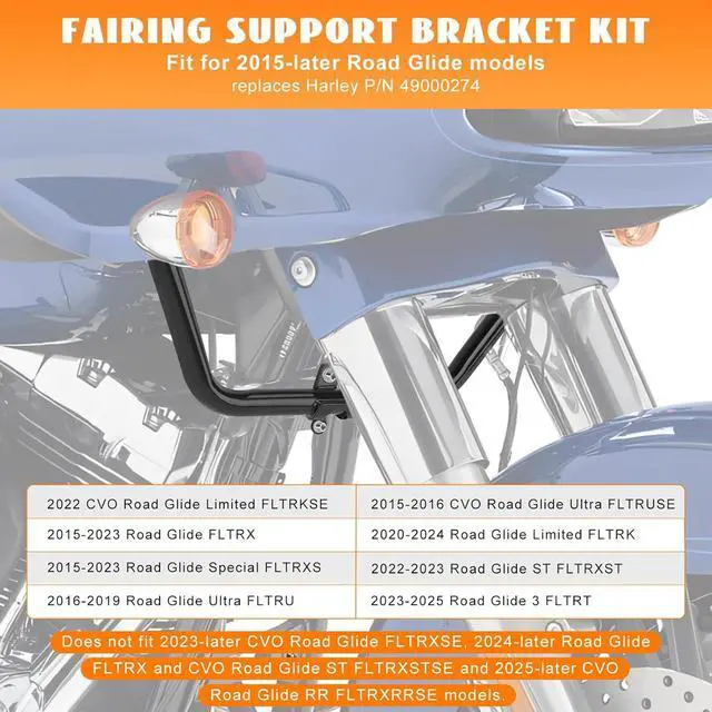 Easy to install: The fairing support bracket for harley road glide is direct bolt-on, no drilling or modifications required, includes necessary hardware, setup with a straightforward installation process, allowing you to get back on the road quickly