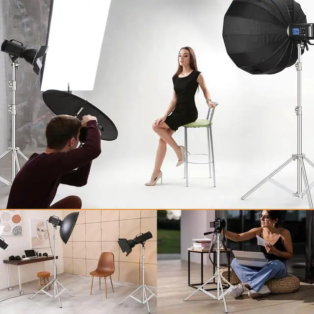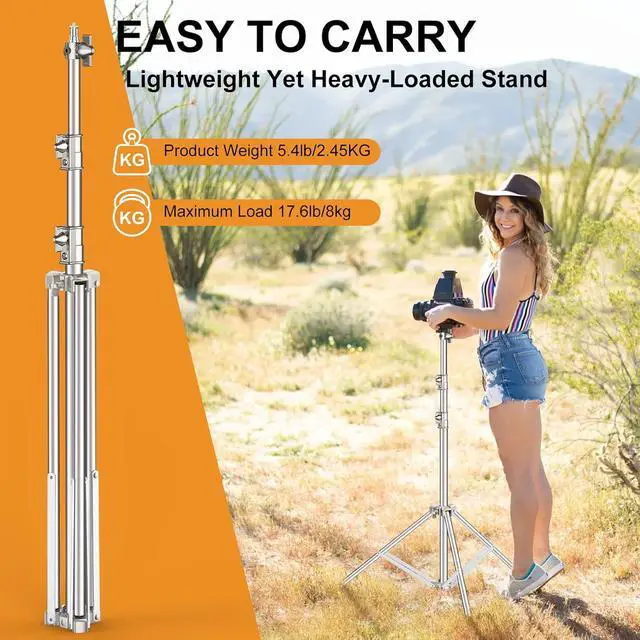 Versatile Screw & Two-Way OptionsEquipped with a 1/4" and 3/8" adapter, this studio lighting stand is well-suited to strobe lights, reflectors, umbrellas, softboxes, speedlights, flashlights, spotlights and DSLR cameras. Moreover, choose between top-mounted or side-mounted installation for flexible lighting direction, catering to your unique shooting needs.